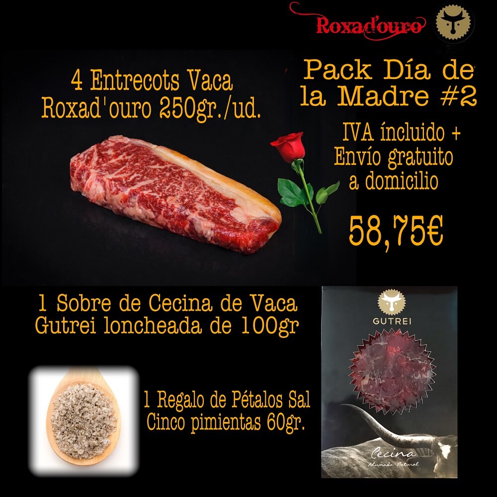 - 4 entrecottes vaca Roxad’Ouro 250 gramos (c/ uno)